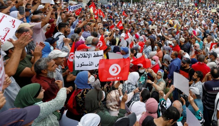 تظاهر بضعة آلاف من التونسيين يوم الأحد قرب مبنى البرلمان مطالبين الرئيس بإعادة البرلمان للعمل واستعادة المسار الديمقراطي بعد استئثار الرئيس قيس سعيد بالسلطة السياسية قبل أربعة أشهر.