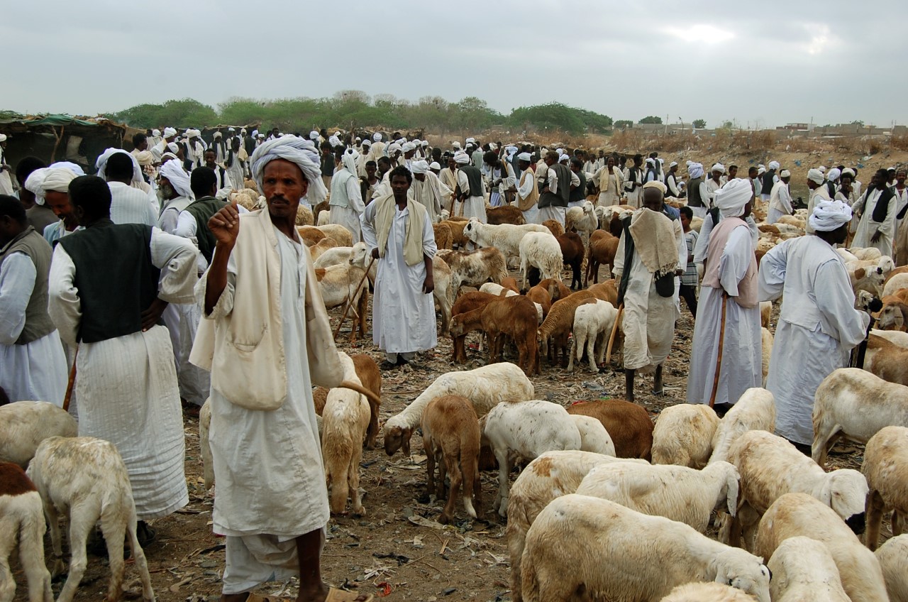 في سوق ود حامد، على بعد 150 كيلومترا شمال الخرطوم، في المنطقة التي لم تصلها الحرب، نجح عبد الله النمر في تجميع قطيع من الخراف يعرضه للبيع.
