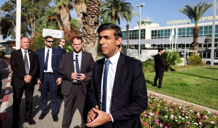 – قال شاهد من رويترز إن رئيس الوزراء البريطاني ريشي سوناك وصل إلى تل أبيب يوم الخميس ليستهل زيارة يعتزم فيها تقديم التعازي لنظيره الإسرائيلي بنيامين نتنياهو بعد هجوم حماس في السابع من أكتوبر تشرين الأول ومناقشة الحرب في غزة.