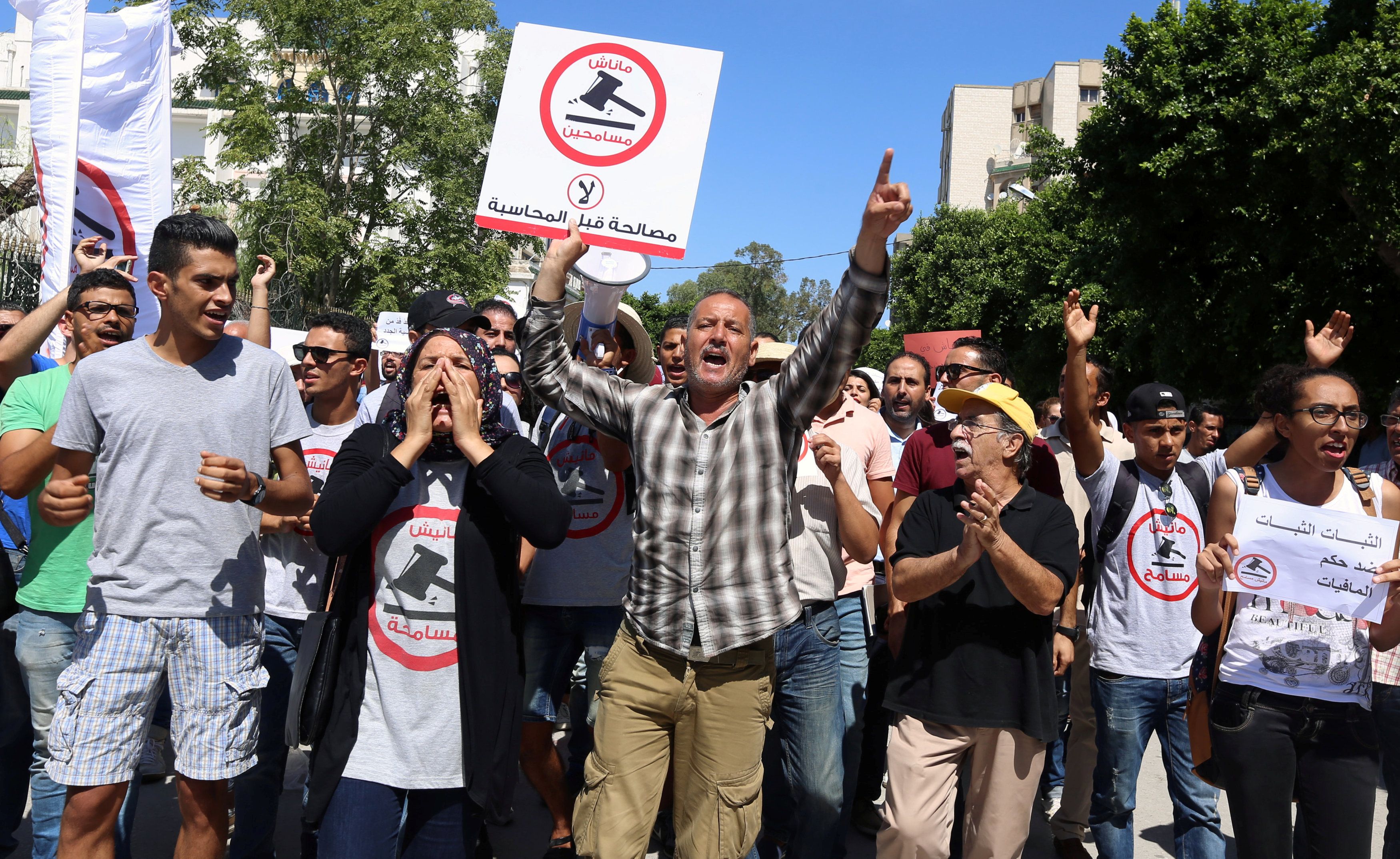 تظاهر أكثر من ألف شخص السبت في تونس العاصمة رفضا لقانون مثير للجدل ينص على العفو عن متورطين في الفساد في عهد النظام السابق واقره البرلمان رغم احتجاج المجتمع المدني والمعارضة.