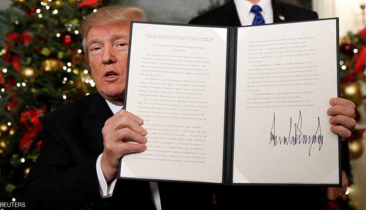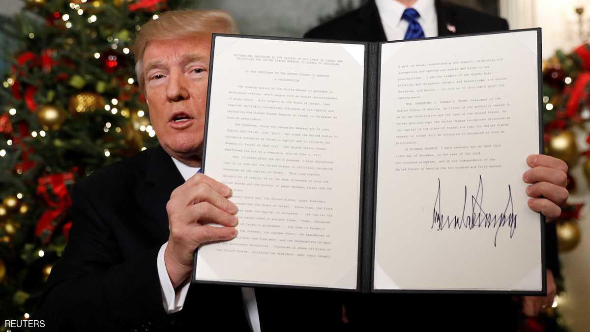 وأعلن الرئيس الأميركي دونالد ترامب، الأربعاء، اعتراف الولايات المتحدة بالقدس عاصمة لإسرائيل وبدء التحضيرات لنقل سفارة بلاده من تل أبيب إلى القدس، في تحد للدول العربية والغربية التي حذرت من خطورة هذه الخطوة.