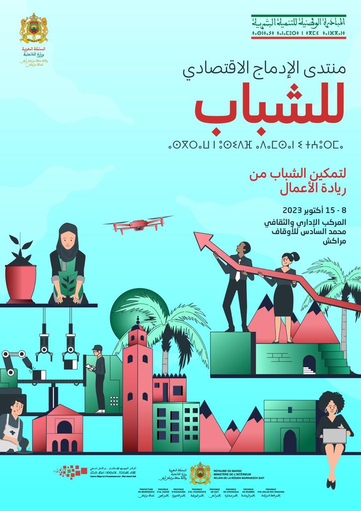 وينظم المنتدى الجهوي للإدماج الاقتصادي للشباب وريادة الأعمال بشراكة مع عمالة مراكش وأقاليم جهة مراكش آسفي والمركز الجهوي للاستثمار والجمعيات الشريكة للمبادرة الوطنية للتنمية البشرية في تنزيل برنامج تحسين الدخل والادماج الاقتصادي للشباب.