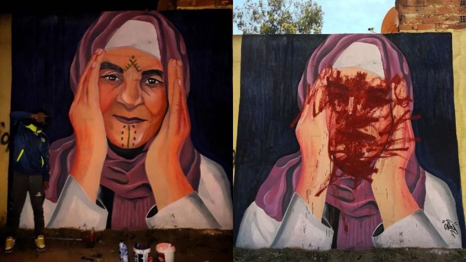 و في السياق ذاته عبر نشطاء مواقع التواصل الإجتماعي عن أسفهم لتخريب الإبداع و تضامنهم مع صاحب اللوحة الفنية لسيدة عجوز .