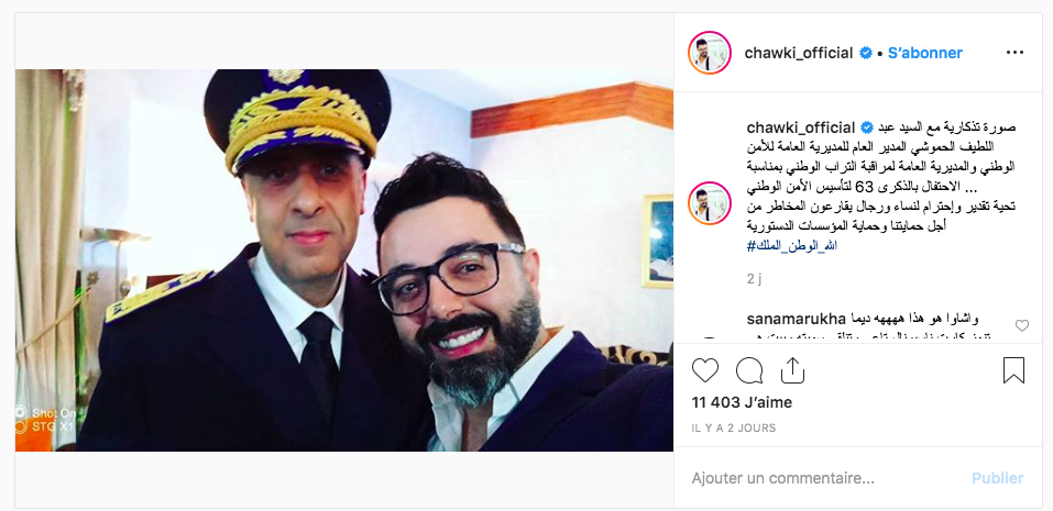 وفي السياق ذاته نشر أحمد شوقي عبر حسابه في الإنستغرام الصورة مرفوقة بتعليق جاء فيه : “صورة تذكارية مع السيد عبد اللطيف الحموشي المدير العام للمديرية العامة للأمن الوطني والمديرية العامة لمراقبة التراب الوطني بمناسبة الاحتفال بالذكرى 63 لتأسيس الأمن الوطني.. تحية تقدير وإحترام لنساء ورجال يقارعون المخاطر من أجل حمايتنا وحماية المؤسسات الدستورية”