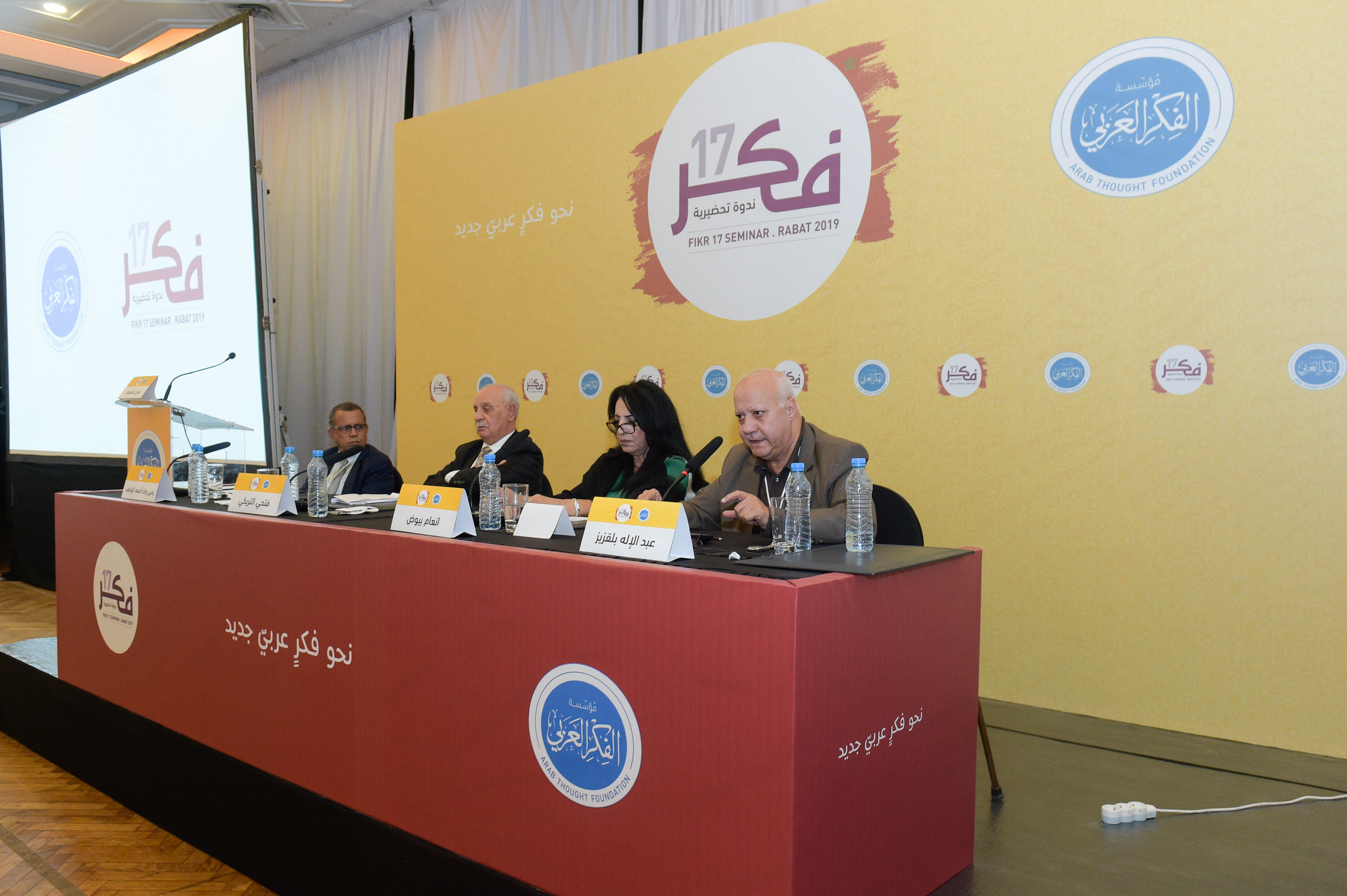 تواصلت فعاليات اليوم الثاني من ندوة “نحو فكر عربي جديد” التي نظّمتها مؤسّسة الفكر العربي في الرباط، تحضيراً لمؤتمرها السنوي “فكر17″، وعُقدت ثلاث جلساتٍ متتالية، تناولت الأولى موضوع “الفكر العربي والإشكاليّات الثقافية الراهنة”، أدارها وزير المالية المغربي السابق معالي الدكتور فتح اللّه والعلو، الذي شدّد على وحدة الطموحات والهموم العربية المشتركة.