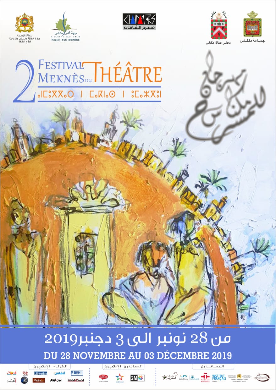 تنظم فرقة مسرح الشامات بشراكة مع وزارة الثقافة والشباب والرياضة (قطاع الثقافة ) وجماعة مكناس ومجلس عمالة مكناس ومجلس جهة فاس مكناس والمعهد الفرنسي مكناس الدورة الثانية لمهرجان مكناس للمسرح ( مكناس خشبة لمسارح العالم ) في الفترة المتراوحة مابين 28 نونبر و3 دجنبر 2019 . الدورة الثانية ستعرف مشاركة فرقة مسرحية من الدول التالية : فرنسا ،بلجيكا ، ايطاليا ،اسبانيا ، ليتوانيا ،تونس ، مصر ، إيران ، الجزائر ، السينغال ، مالي ، بالإضافة إلى المشاركة المسرحية المغربية .