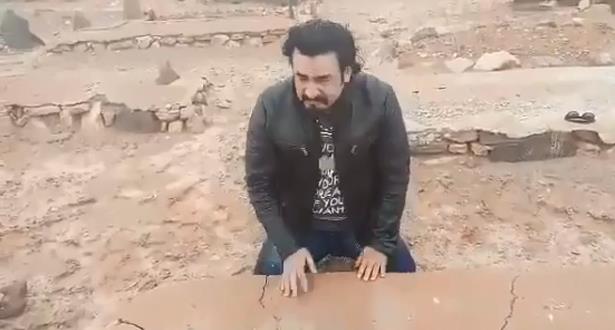 وانهار الممثل المغربي باكيا أمام قبر والده، وهو يتلو أدعية ويترحم عليه وعلى من وهبوا حياتهم في خدمة الوطن.