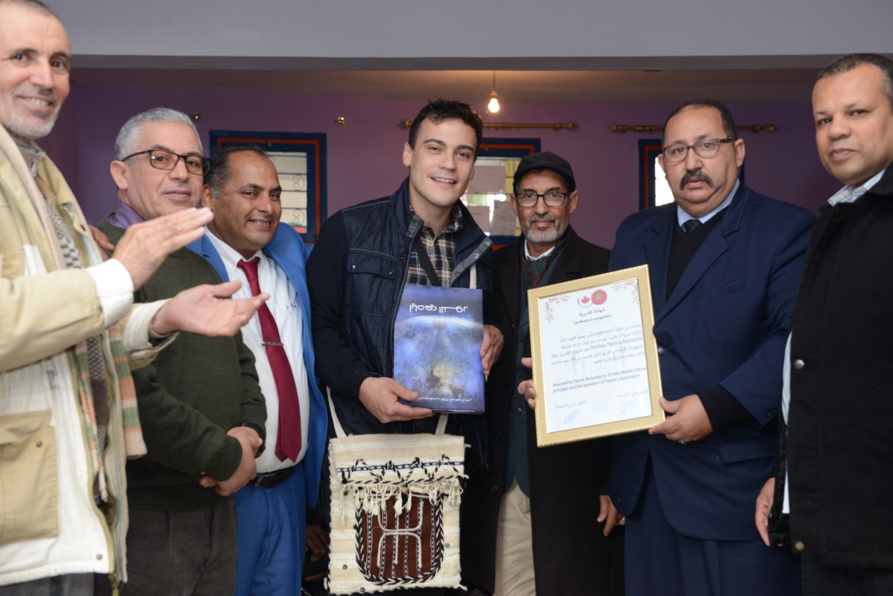 الحفل نظمته إدارة المؤسسة وجمعية الأمهات وأباء والأولياء تلميذاتها وتلاميذها، بحضور مديرها وطاقمها التربوي والإداري ورئيس الجمعية وأعضاء مكتبها المسير، وعدد من تلاميذ المؤسسة الموهوبين، تعبيرا منهم على شكرهم وامتنانهم للفنان الكندي الذي قدم درسا في التطوع لخدمة المؤسسة التعليمية والرقي بالذوق الفني والجمالي في فضائها.