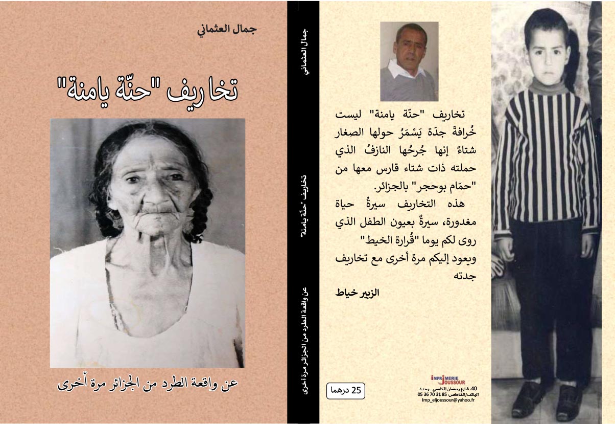 عن مطبعة جسور بوجدة صدر للكاتب جمال العثماني مؤلف جديد عن تجربة الطرد التي تعرضت له الأسر المغربية من الجزائر شتاء 1975 عنونه ب “تخاريف حنَة يامنة” وهو امتداد لكتابه السابق “قُرارة الخيط” وكلاهما اشتغال على ذاكرة الطرد الذي أقدمت عليه الطغمة الحاكمة في الجزائر في حق هؤلاء المغاربة الأبرياء سنة 1975