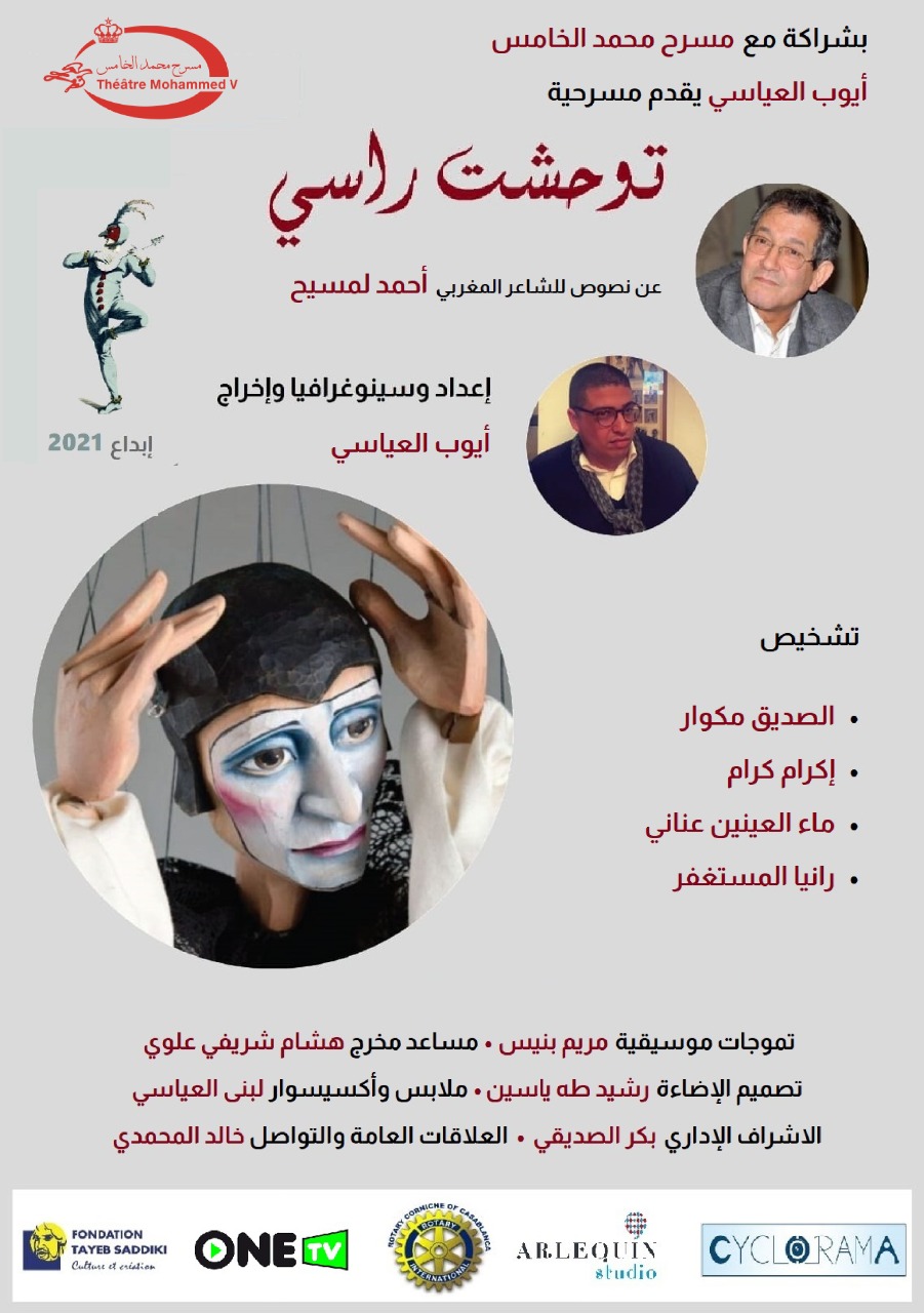 يقدم الفنان أيوب العياسي بشراكة مع مسرح محمد الخامس، مسرحية “توحشت راسي” عن نصوص للشاعر المغربي أحمد المسيح.