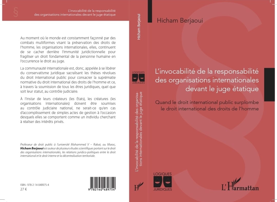 صدور كتاب باللغة الفرنسية تحت عنوان: “إثارة مسؤولية المنظمات الدولية أمام القضاء الوطني أو عندما يبتلع القانونُ الدوليُّ العام القانونَ الدولي لحقوقِ الإنسان”، عن دار النشر الفرنسية لارماتان L’Harmattan، للدكتور هشام برجاوي.