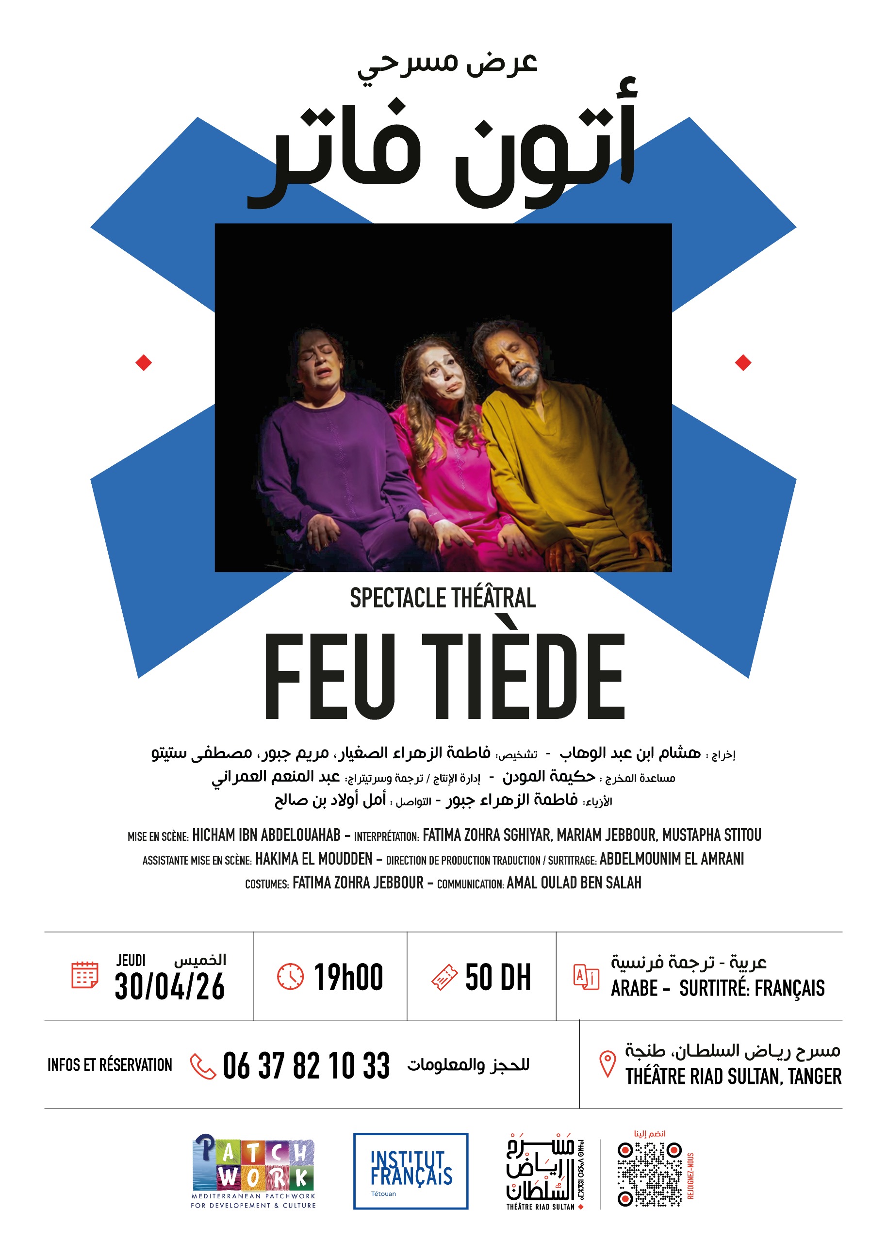 وتختتم فعاليات هذه الدورة يوم الخميس 30 أبريل مع العرض المسرحي «أتون فاتر» من إخراج هشام ابن عبد الوهاب، بمشاركة الممثلين فاطمة الزهراء الصغير، مريم جبور، ومصطفى ستيتو.