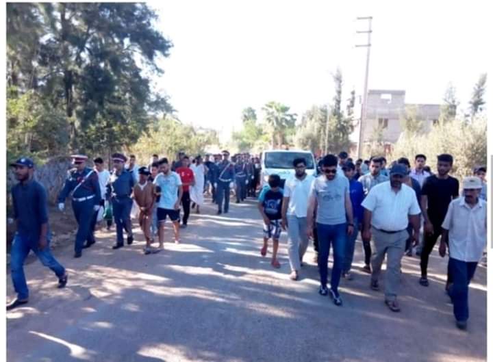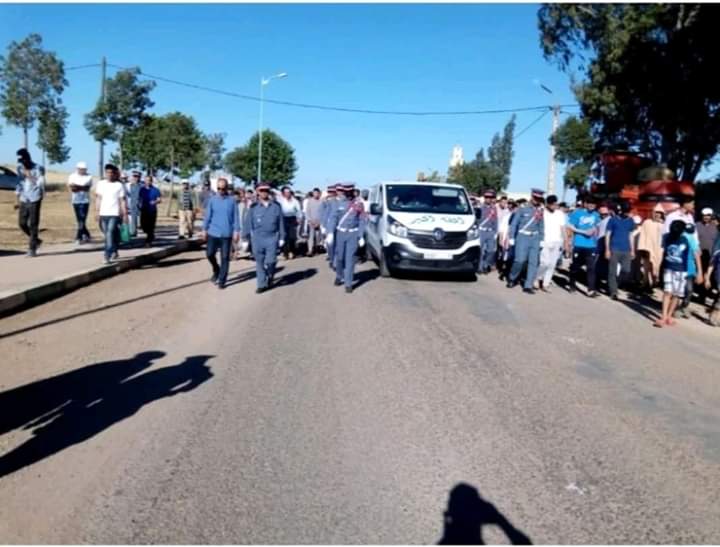 بحضور عامل إقليم الخميسات منصور قرطاح ومسؤولين من الدرك الملكي والقوات المسلحة الملكية وأسرة الهالك ومعارفه وأصدقائه وساكنة جماعة عين السبيت دائرة الرماني؛ تم اليوم (الأربعاء ) تشييع جنازة الدركي الذي لقي حتفه أمس ضواحي مدينة طنجة اتناء أداء واجبه المهني بعد صدمه من طرف سيارة لاذ بالفرار حينها.