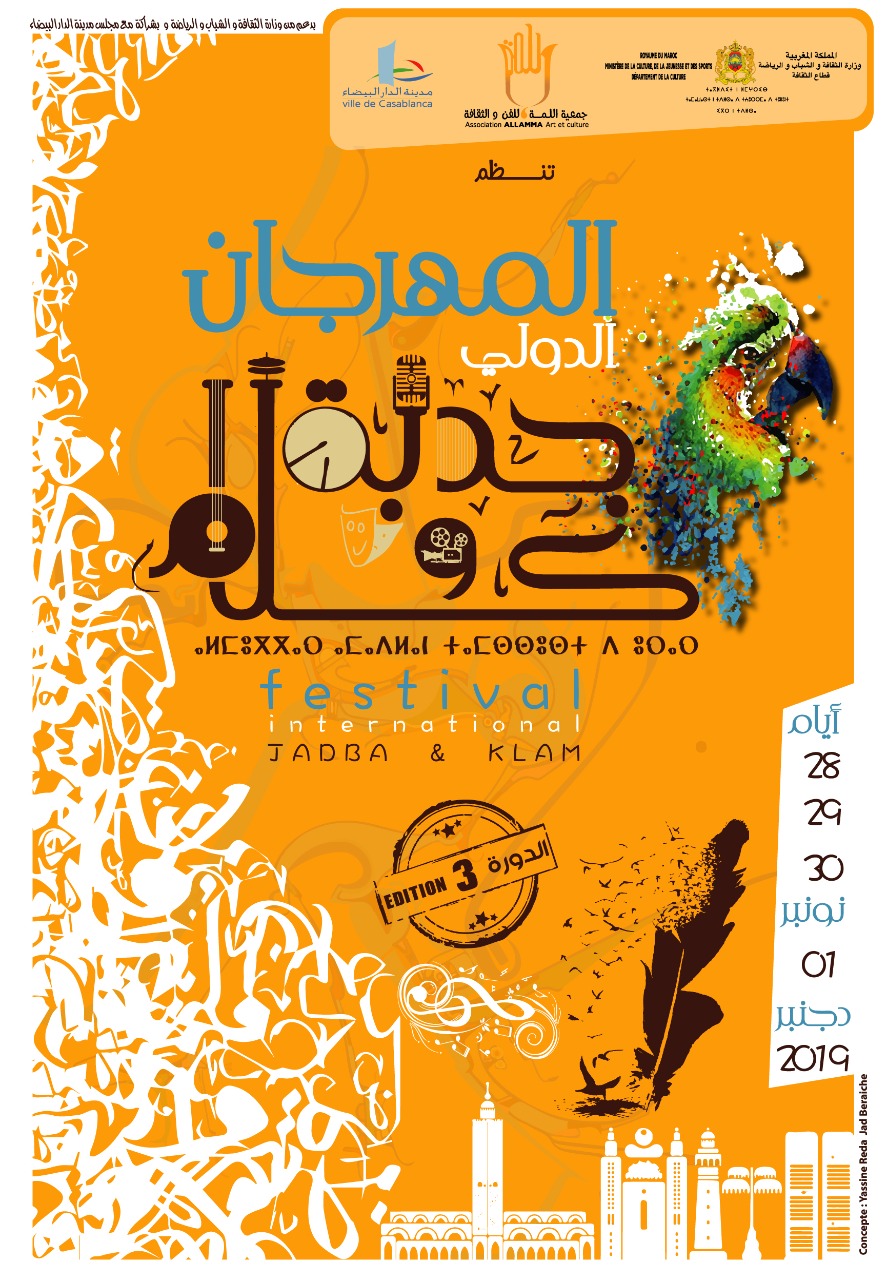 بدعم من وزارة الثقافة والشباب والرياضة وبشراكة مع مجلس مدينة الدار البيضاء تنظم جمعية اللمة للفن والثقافة الدورة الثالثة للمهرجان الدولي جدبة وكلام، وذلك في الفترة الممتدة ما بين 28 نونبر و الفاتح من دجنبر القادم بالمركب الثقافي كمال الزبدي بالدار البيضاء .