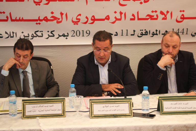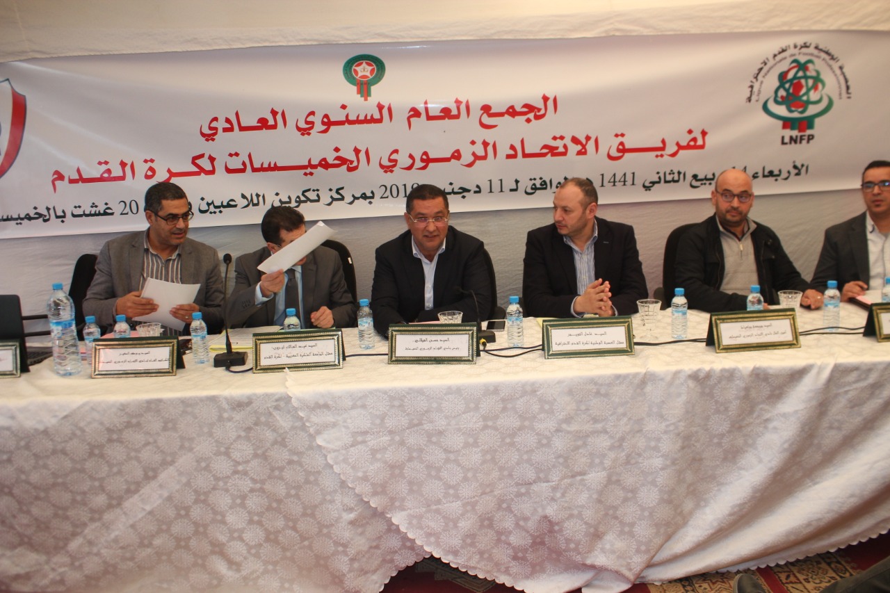 بحضور كل من ممثل الجامعة الملكية المغربية لكرة القدم وممثل العصبة الوطنية الإحترافية لكرة القدم ، تم انتخاب حسن الفيلالي رئيس المكتب المديري لفريق الإتحاد الزموري للخميسات فرع كرة القدم ، اليوم (الأربعاء)خلال أشغال الجمع العام العادي السنوي للموسم 2018/2019 بمركز تكوين اللاعبين بملعب 20 غشت بالخميسات. وعرف الجمع العام ، بعد التحقق من النصاب القانوني بحضور 26 منخرط من اصل 32، تدخل ممثل الجامعة الملكية لكرة القدم مع الاطلاع على محضر الجمع العام السابق و تلاوة التقريرين الأدبي والمالي والمصادقة عليهما. واللذان تطرقا إلى مشوار الفريق الزموري على مستوى التسيير الإداري والمالي والنتائج المحققة وكذا جميع الأمور المرتبطة رياضيا بالفريق وعلى جميع المستويات.
