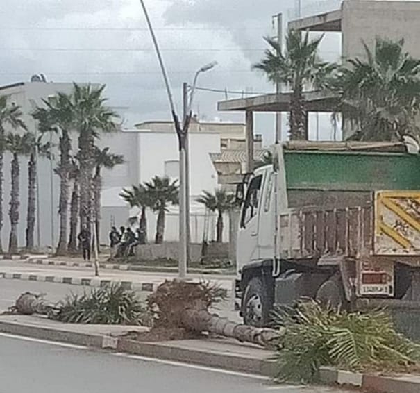 تعددت الاسئلة والتأويلات والشروحات والقيل والقال،مع بداية الاسبوع الجاري،بمدينة تيفلت،بعدما استفاقت ساكنة المدينة على اشغال اقتلاع اشجار النخيل على مستوى شارع محمد الخامس الذي يربط من مدخل تيفلت من جهة الرباط الى مخرجها على مستوى مدينة الخميسات.