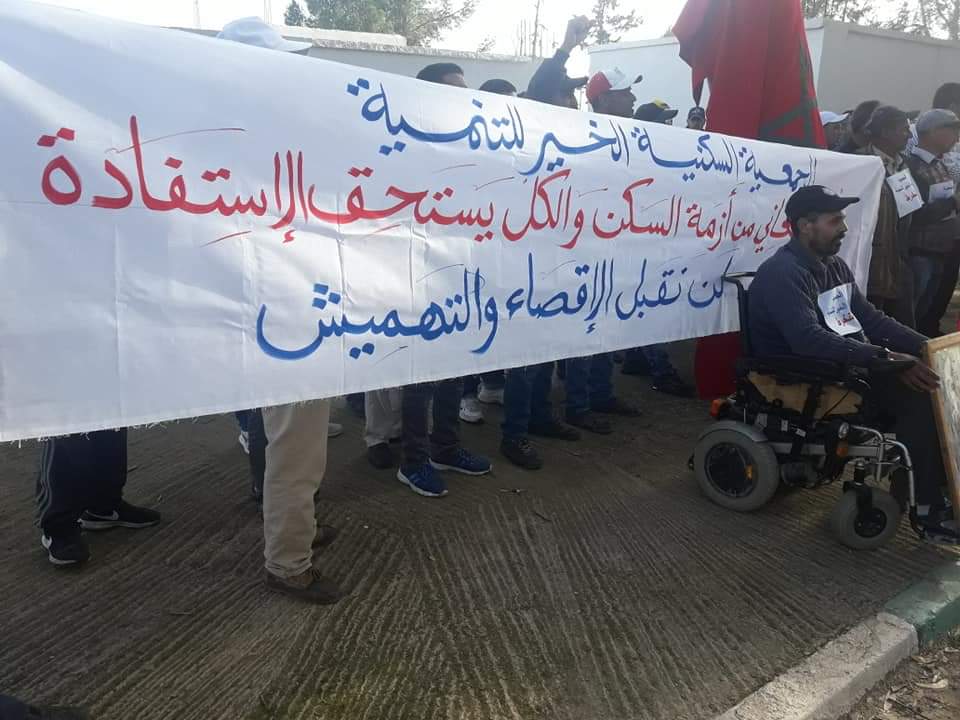 و خلال هذه الوقفةثم رفع مجموعة من الشعارات تعبر عن الحاجة الماسة إلى السكن،ورفض كل أنواع التهميش والإقصاء والزبونية.