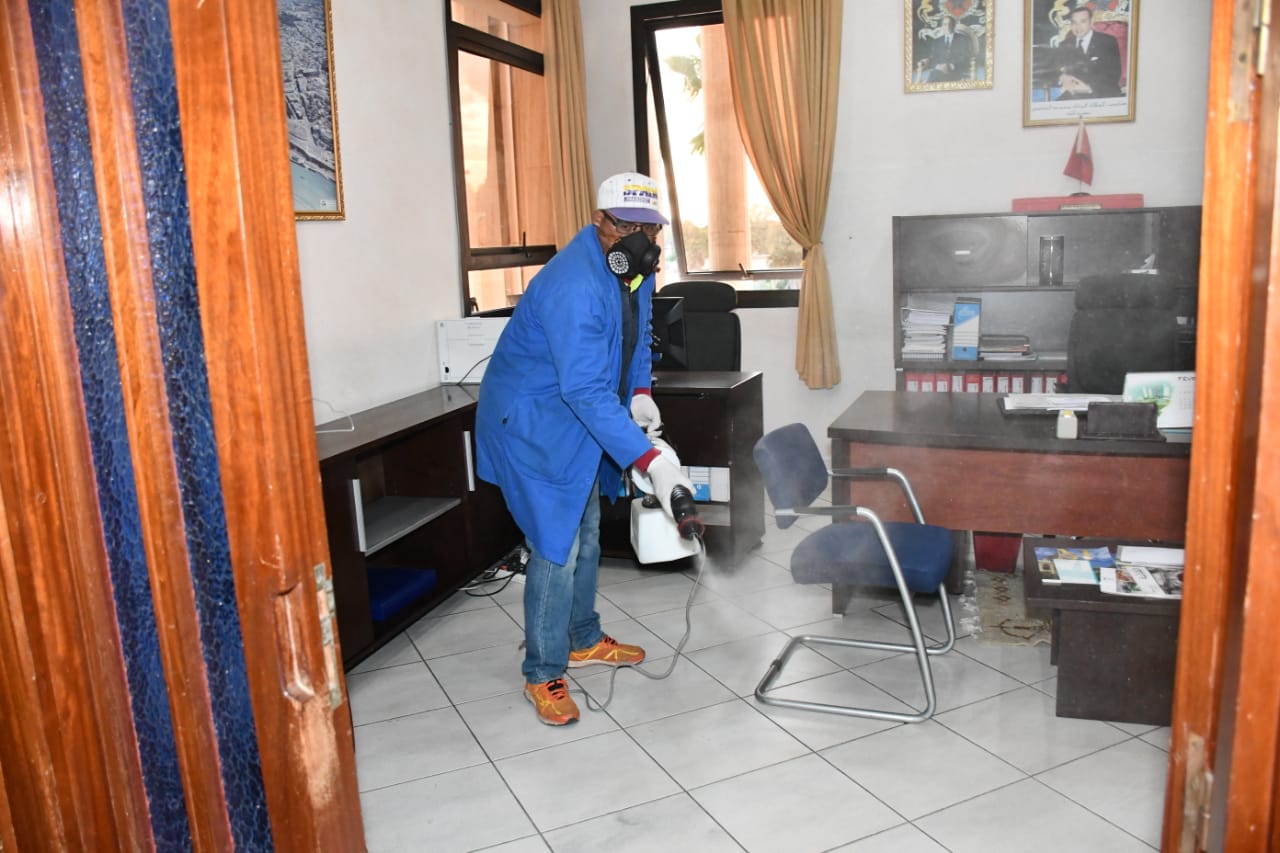 جانب من الإجراءات الاستعجالية للسلامة الصحية حماية للموظفين و للمرتفقين بجماعة الرباط