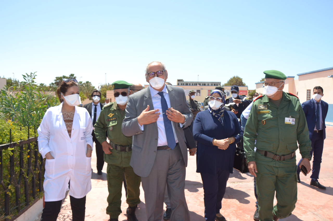 واطلع والي جهة الداخلة وادي الذهب بمعية الوفد المرافق له على الترتيبات والتدابير المتخذة للبدء في تنفيذ العمل المشترك بين التمثيليات الجهوية للقوات المسلحة الملكية والدرك الملكي والقوات المساعدة، والمديرية الجهوية، وقدمت له شروحات مستفيضة همت الاستعدادات والتدابير المتخذة، بالإضافة إلى التجهيزات الطبية واللوجيستيكية الموجهة لعلاج الحالات المحتملة بكوفيد 19.