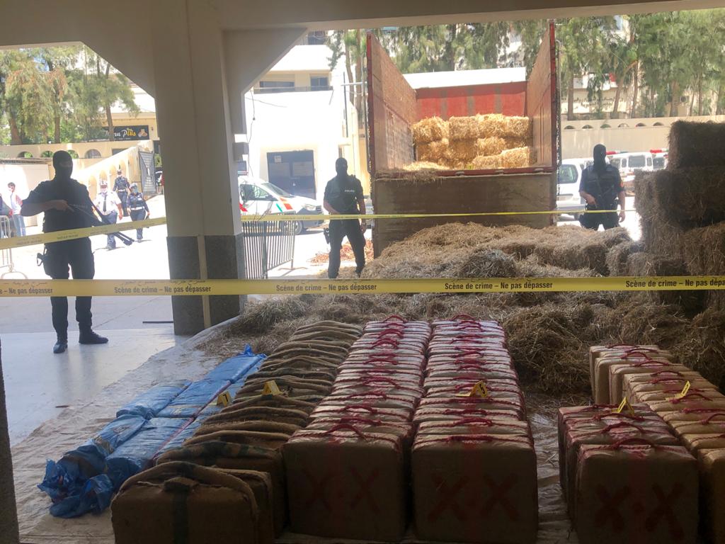 وقد تم توقيف المشتبه فيه على متن شاحنة مسجلة بالمغرب، بالجماعة القروية “الغوازي” الواقعة بين قرية بامحمد ومدينة جرف الملحة، حيث أسفرت عمليات التفتيش داخل الشاحنة عن حجز طنين (02) من مخدر الحشيش، مكونة من 75 رزمة مخبأة ضمن شحنة من مادة التبن، فضلا عن حجز مبلغ مالي يشتبه في كونه من عائدات هذا النشاط الإجرامي.