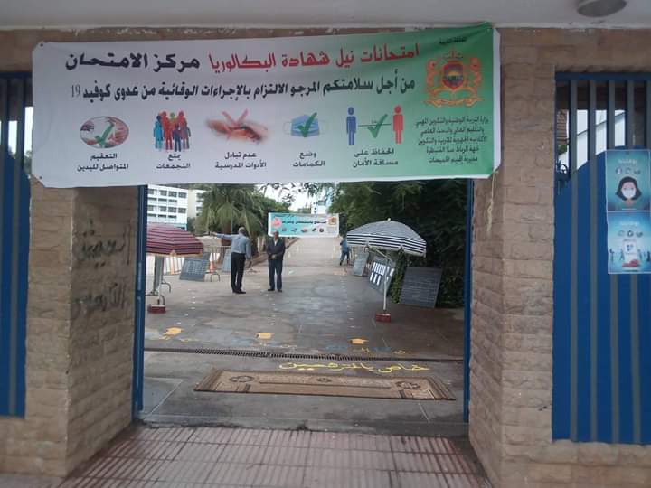 • تعقيم كافة مرافق المراكز قبل وخلال الامتحان بمعدل مرتين في اليوم وضع مخططات محلية لتيسير تدفق المترشحين أثناء الدخول والخروج بوضع الحواجز والتشوير الأرضي لضمان التقيد بالتباعد المكاني بين المترشحين قبل ولوج مراكز الامتحان، مع إلزام المترشحين بوضع الكمامات وبتعقيم اليدين عند بداية ونهاية كل حصة من حصص الاختبار.