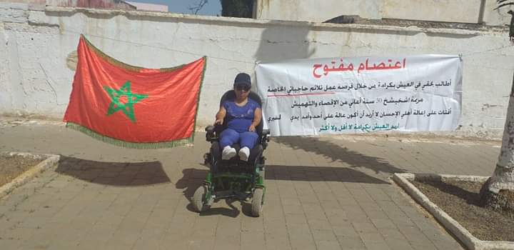 دخلت فتاة من ذوي الاحتياجات الخاصة،اليوم (الاربعاء) فاتح يوليوز،في اعتصام مفتوح امام مقر عمالة اقليم الخميسات،للمطالبة بالعيش الكريم وان تستفيد ويتم تحقيق مطالبها،التي سبق وان عبرت عنها خلال السنة الماضية وبذات المكان،لكن دون نتيجة او تحقيق للوعود التي تلقتها من طرف من يهمهم الامر.