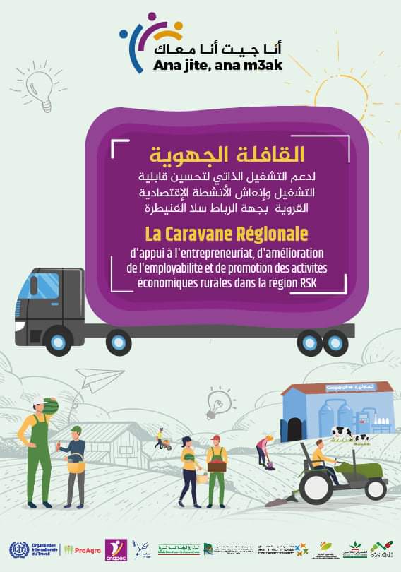 مصادر التمويل من هذه الفئة و ادماج الباحثين عن شغل في النسيج الاقتصادي تعتزم الوكالة الوطنية النعاش التشغيل و الكفاءات تنظيم قافلة : “انا جيت انا معك” و هي القافلة المتعددة الخدمات الأولى من نوعها بإقليم الخميسات، ترسيخا لمبدأ العدالة المجالية و خاصة لفائدة الشباب المنتمي للعالم القروي، و التنقيب على الكفاءات القادرة على انشاء مقاولات صغيرة و متوسطة ومشاريع مدرة للدخل بمساعدة و تأطير و تتبع فريق متكامل يضم خبراء في مجال مواكبة المشاريع و تحسين قابلية التشغيل لدى هذه الفئة او عبر الإستفادة المجانية من تكوينات تأهيلية مواكبة لمتطلبات سوق الشغل .