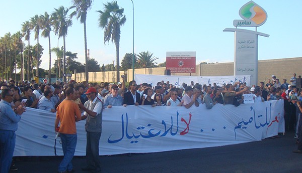 نظم عمال شركة لاسامير، للمرة السادسة على التوالي، وقفة احتجاجية أمام المقر المركزي للشركة بمدينة المحمدية، للمطالبة برفع ما وصفوه ب”الحصار المفروض على المصفاة وأيضا بعودة الإنتاج بالشركة الذي توقف منذ غشت 2015″.