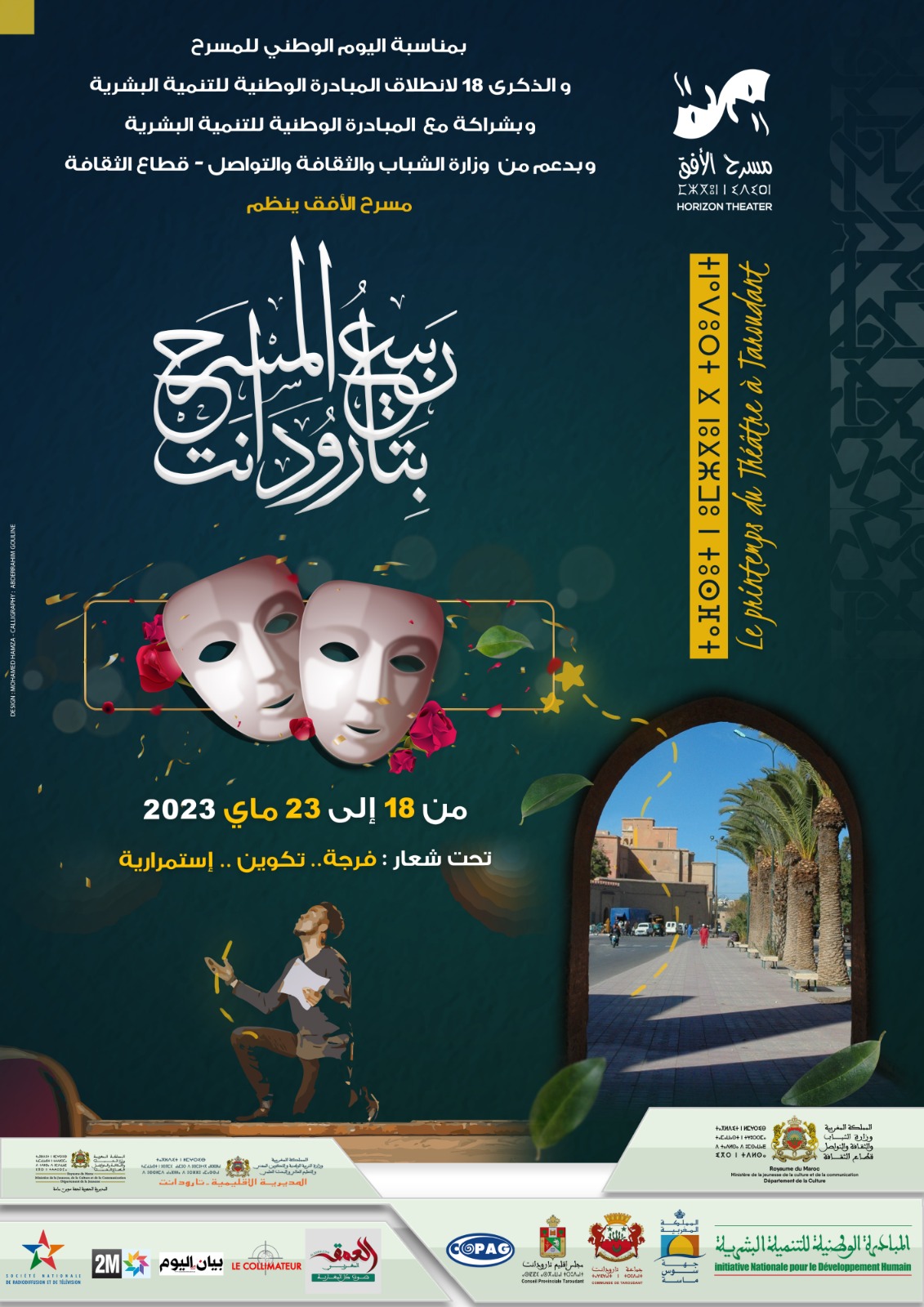 احتفالا باليوم الوطني للمسرح وبالذكرى 18 لانطلاق المبادرة الوطنية للتنمية البشرية، وتحت شعار “فرجة، تكوين، استمرارية” تنظم جمعية مسرح الأفق تظاهرة مسرحية برؤية جديدة، تحمل عنوان “ربيع المسرح بتارودانت”، وذلك خلال الفترة الممتدة من 18 إلى 23 ماي 2023.