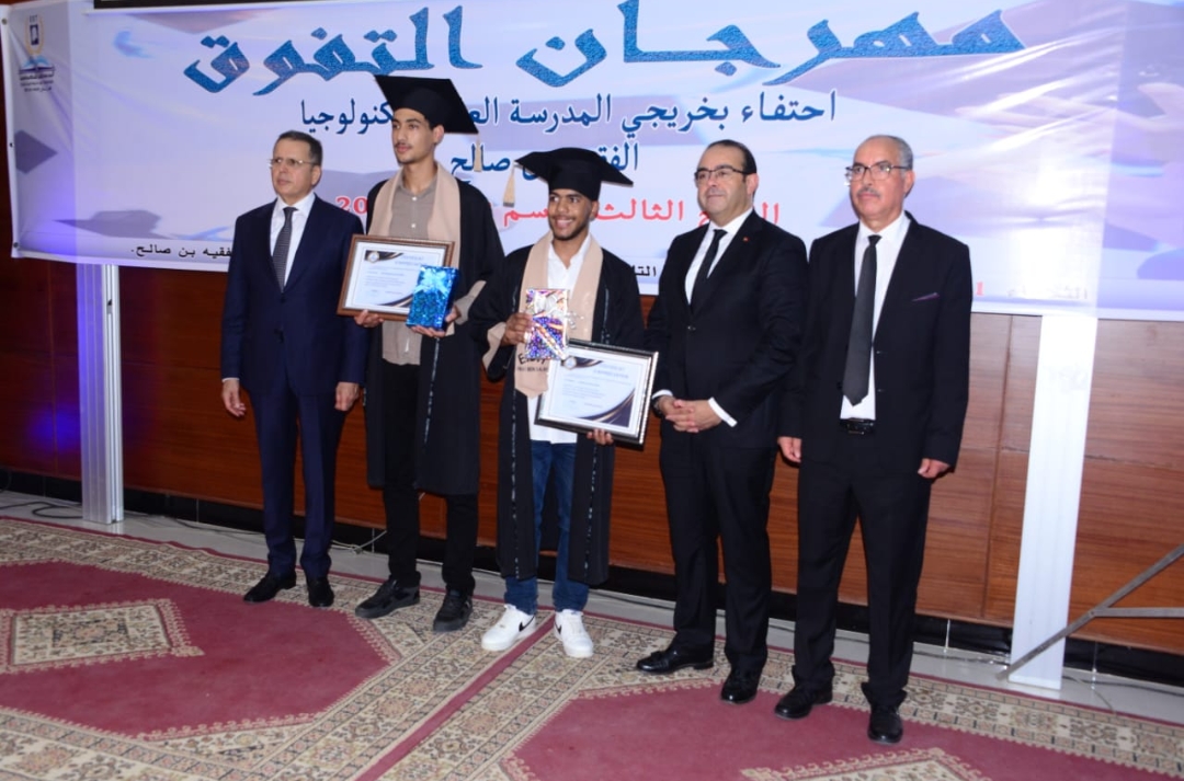 نظمت المدرسة العليا للتكنولوجيا بالفقيه بن صالح الثلاثاء 11 يوليوز الجاري حفل تخرج الفوج الثالث من طلبة ، وذلك بحضور محمد قرناشي عامل اقليم الفقيه بن صالح ، مصطفى أبو معروف رئيس جامعة السلطان مولاي سليمان بني ملال ، المصطفى راكب مدير المدرسة العليا للتكنولوجيا بالفقيه بن صالح ، وشخصيات مدنية وعسكرية مختلفة ، وتضمن هذا الحفل لكلمة لممثلي الخرجين ، وتسليم شواهد التخرج، و جوائز المتفوقين.