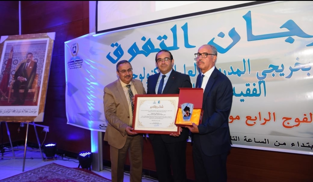 وتم خلال هذا الحفل، تكريم شخصيات مختلفة لما قدموه من جهود جبارة ومخلصة ومساندة متواصلة للمدرسة العليا للتكنولوجيا بالفقيه بن صالح، ثم تكريم مجموعة من الطلبة المتفوقين في العديد من التكوينات في الدبلوم الجامعي التقني والإجازة المهنية والذين تفوقوا في مسارهم الدراسي ونالوا شهادات جامعية عليا .