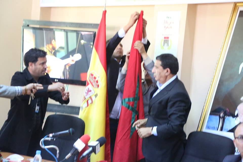 قالت مصادر محلية حضرت الندوة الصحفية نظمها رئيس المجلس البلدي الوزير المنتدب في الوظيفة العمومية يوم الاربعاء بالفقيه بنصالح، ان فضيحة شاهدها الحضور لما قام الوزير محمد مبديع ، بالعناية المفرطة ب”علم” دولة اسبانيا، في حين لم يقم بنفس الامر بالنسبة ل”علم” المغرب، خصوصا وان الحضور استغربوا من وضع علم اسبانيا في الندوة الصحافية في غياب اي ممثل عن السفارة الاسبانية بالمغرب.