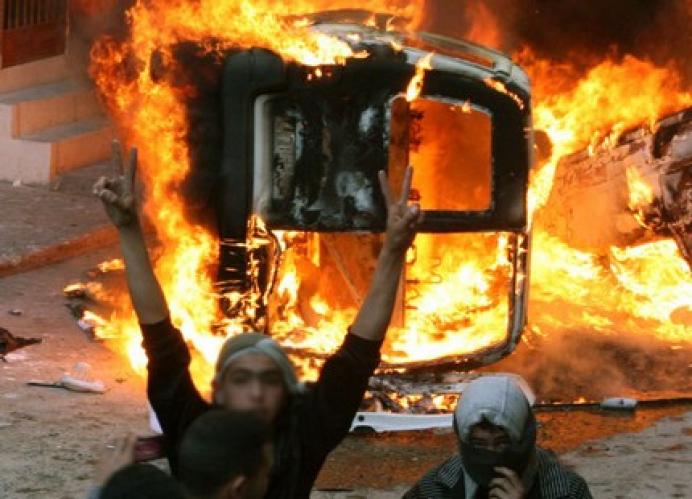 غريب: مجموعة من الاشخاص يهاجمون رجال الامن ويحرقون سيارات بامزورن