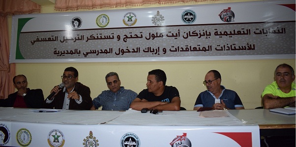 وأكدت ذات الهيئات النقابية، في ندوة صحفية نظمت مساء يوم الأربعاء 19 شتنبر 2017، بمقر مؤسسة الأعمال الاجتماعية بإنزكان، عزمها الدخول في محطات نضالية، من أجل حمل الجهات المسؤولة بالأكاديمية الجهوية للتربية والتكوين لسوس ماسة، التي أصدرت القرار عشية الدخول المدرسي، على إعادة 50 أستاذة متعاقدة إلى مديرية التعليم بإنزكان أيت ملول، مطالبين بجبر الضرر الذي شمل كل من الأستاذات المعنيات بالانتقال، وكذا الأطر التربوية والتلاميذ الذين تضرروا بسبب الإجراءات الارتجالية التي اتخذت للتخفيف من تداعيات القرار.