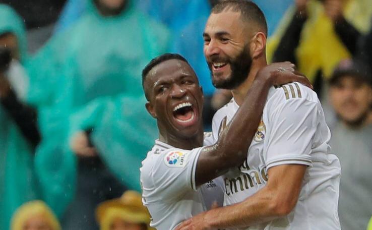 وقاد المهاجم الفرنسي كريم بنزيمة ريال مدريد للفوز بعدما تمكن من تسجيل هدفين من أصل ثلاثة .