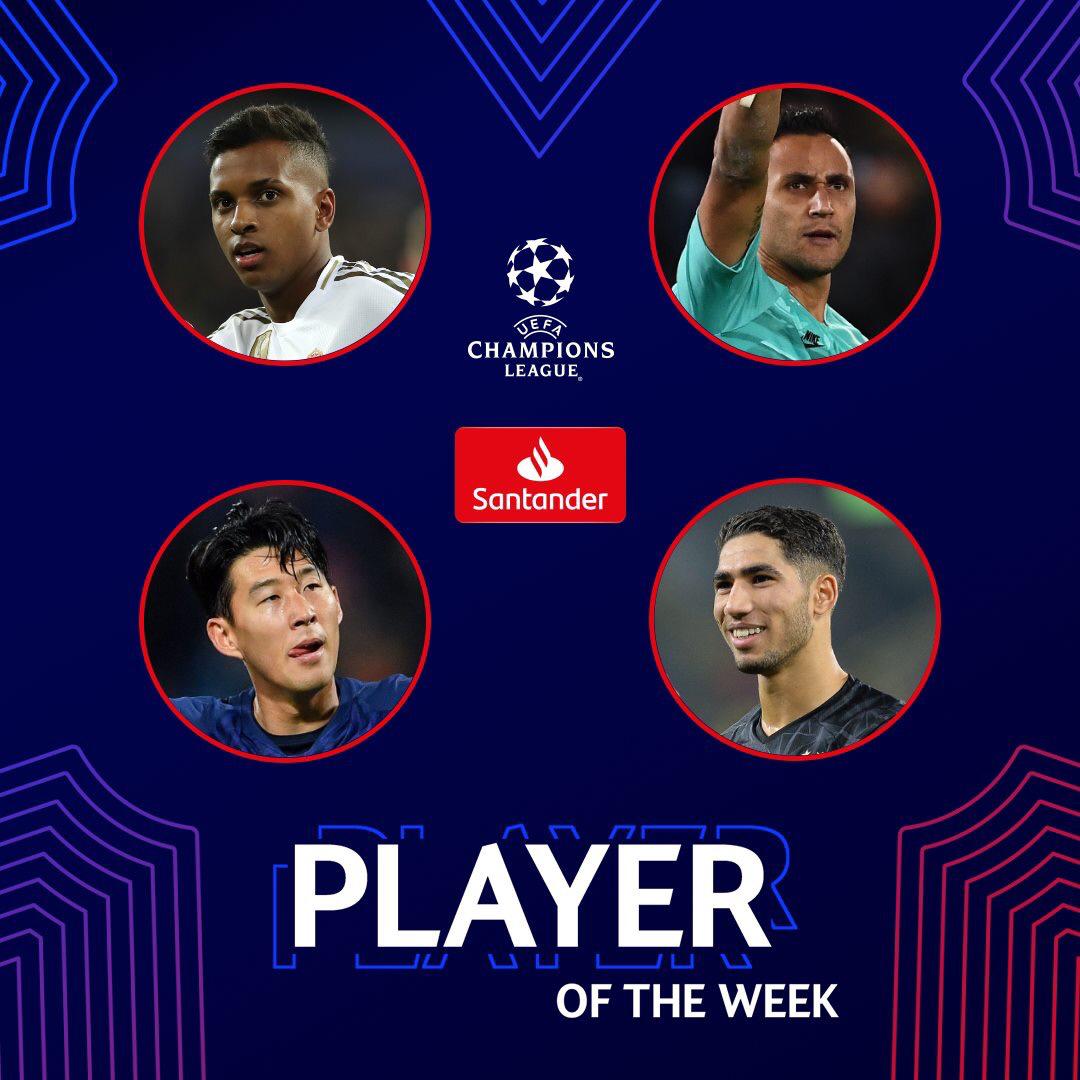 وبعد إختتام الجولة الرابعة، أمس الأربعاء، فإن الـ”يويفا” كشف عن اللاعبين، الذين سينافسون على الجائزة، وتم اختيار كل من : أشرف حكيمي(بروسيا دورتموند) و رودريغو (ريال مدريد) وكايلور نافاس ( باريس سان جيرمان) وسون (توتنهام) .
