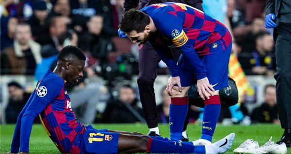 وأضاف النادي ”أكدت الفحوص التي خضع لها عثمان ديمبلي اليوم انه يعاني من تمزق كامل في عضلات الفخذ الخلفية للساق اليمنى“.
