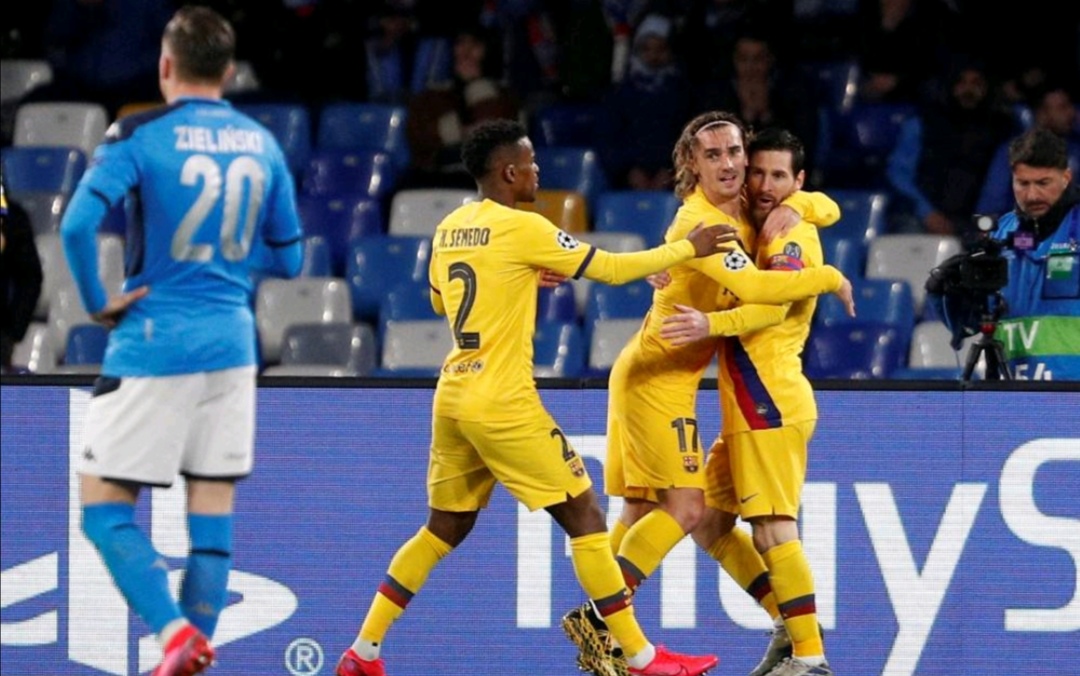 برشلونة يتعادل مع نابولي في دور الـ16 من دوري أبطال أوروبا