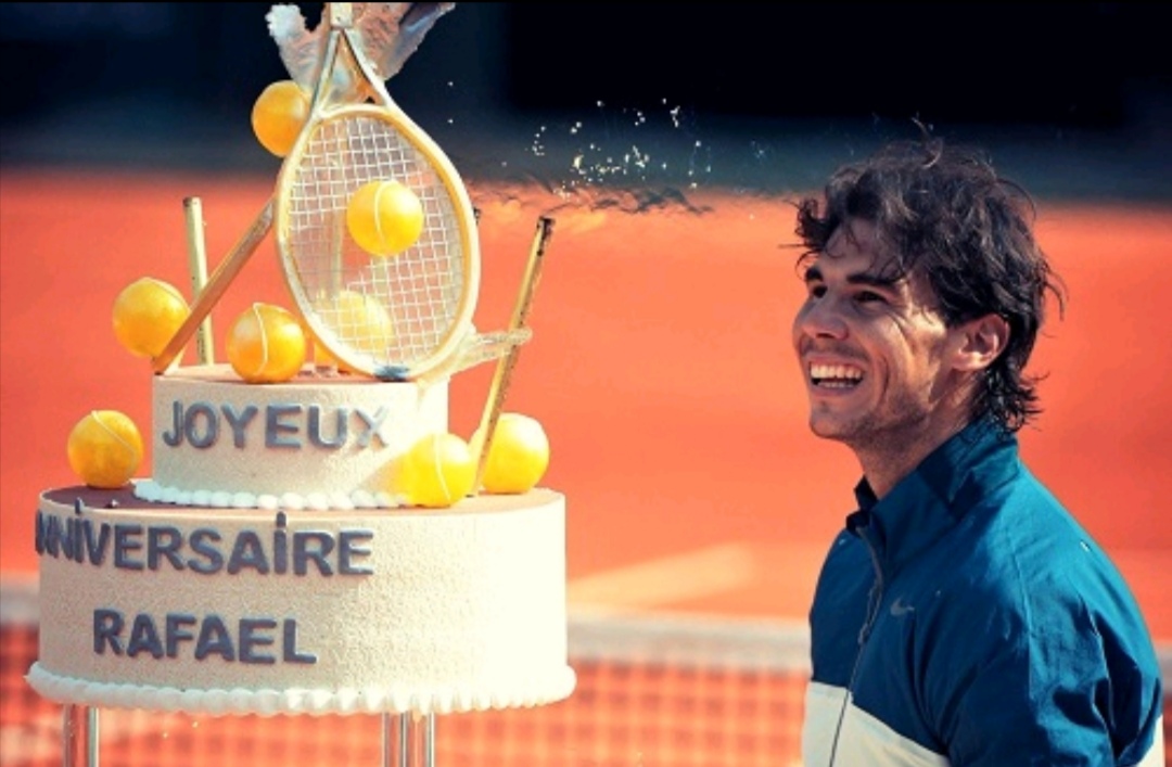 وكانت صورته مع كعكة عيد الميلاد وحولها الجميع دليلا صادقا على أن نادال في منافسه على بطولة الجائزة الكبرى الباريسية التي فاز بها 12 مرة.