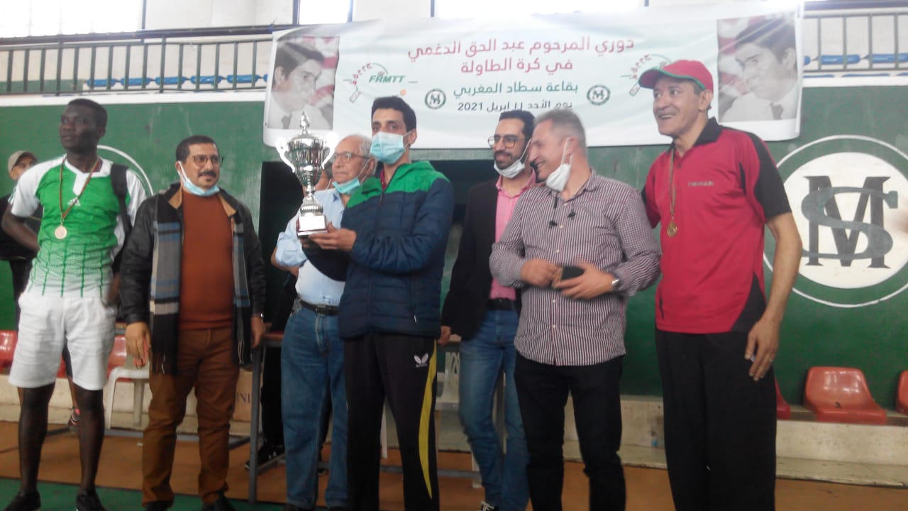 توج فريق سطاد المغربي الرباطي لتنس الطاولة في شخص لاعبه حرب اثر تغلبه على للاعب ظهري من الوداد البيضاوي بثلاث جولات مقابل جولة برسم النسخة الاولى من دوري المرحوم عبد  الحق الدغمي بالذكرى الاربعينية لرحيله وذلك من تنظيم الجامعة الملكية المغربية لكرة الطاولة التي يراسها السيد منقذ حاجي بحضور اعضاء مكتبه التنفيذي وثلة من شخصيات رياضية واقرباء واصدقاء المرحوم الدغمي احد الوجوه الفتحية.