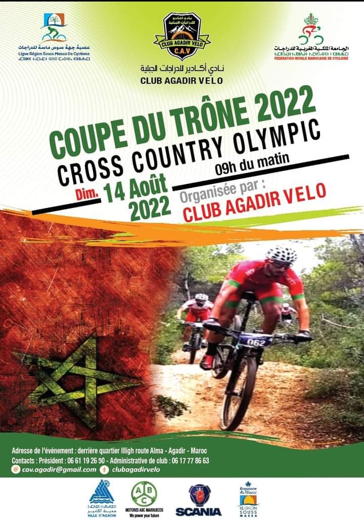 تحتضن مدينة أكادير يوم الأحد المقبل ( 14 غشت) منافسات كأس  العرش للدراجات الجبلة لسنة 2022 ، المنظمة من طرف نادي أكادير للدراجات الجبلية، تحت إشراف الجامعة الملكية المغربية للدراجات، وعصبة جهة سوس ماسة للعبة.