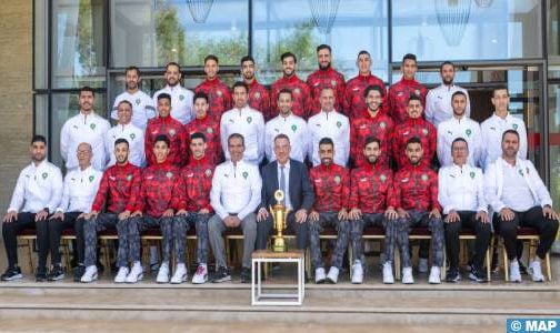 وبهذه المناسبة، هنأ رئيس الجامعة الملكية المغربية لكرة القدم، فوزي لقجع، جميع أعضاء المنتخب المغربي لكرة القدم داخل القاعة على الإنجاز الذي حققوه، مذكرا ببرقية التهنئة التي بعثها صاحب الجلالة الملك محمد السادس والتي عبر فيها جلالته عن عظيم فخره بما أظهره أعضاء الفريق الوطني من إصرار منيع على مواصلة حمل اللقب للموسم الثالث على التوالي، حافزهم في ذلك غيرتهم الوطنية المثالية وانخراطهم الجاد في مسيرة الإشعاع الكروي والرياضي المغربي.