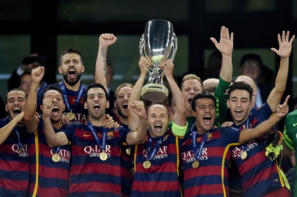 وانتزع برشلونة الفوز على اشبيلية، بطل الدوري الاوروبي (يوروبا ليغ) في المواسم الثلاثة الماضية، بهدفين نظيفين ذهابا الاحد الماضي حملا توقيع الاوروغوياني لويس سواريز والشاب منير الحدادي اثر تمريرتين من الارجنتيني ليونيل ميسي.