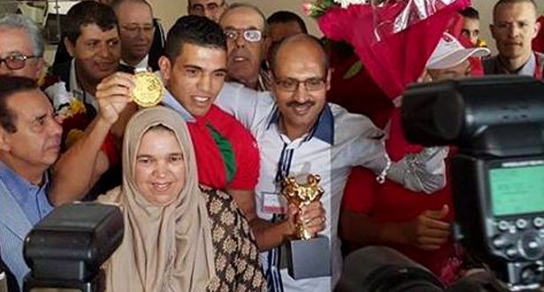 استقبال حار للملاكم المغربي محمد الربيعي في مطار محمد الخامس