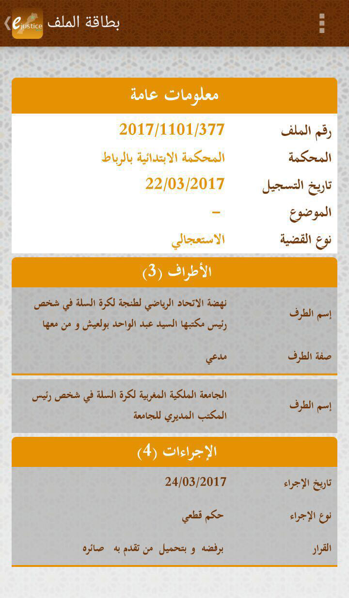 وكان عبد الواحد بولعيش ومدرج نيجا قدم تقدما برفع دعوى قضائية ضد الجامعة الملكية المغربية من أجل عدم إجراء الجمع العام العادي للموسم الرياضي 2015-2016.