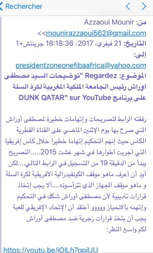 لكم مثال حي لرسالة التي تم بعثها الى الإتحاد الإفريقي لكرة السلة المنطقة الأولى وكذلك رئيس المنطقة الأولى و الإتحاد الدولي لكرة السلة، و لكن كانت الإجابة واضحة و سريعة من طرف رئيس الإتحاد الإفريقي لكرة السلة بحضوره بشكل رسمي نهائيات البطولات الوطنية بمدينة مراكش..