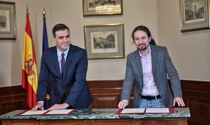 ووقع بيدرو سانتشيث، رئيس حكومة تصريف الأعمال في إسبانيا الاشتراكي وبابلو إيغلسياس زعيم حزب ” بوديموس” اليساري المتطرف اتفاقا اليوم الثلاثاء، لتشكيل ما يطلقان عليه اسم حكومة ائتلافية “تقدمية”.