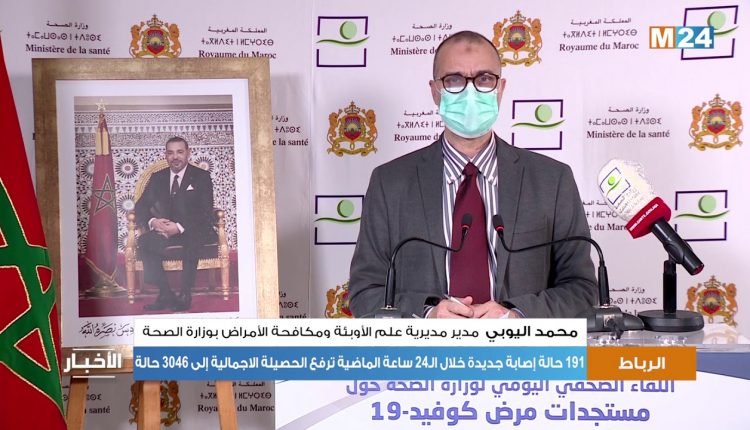 191 حالة إصابة جديدة خلال الـ24 ساعة الماضية ترفع الحصيلة الاجمالية إلى 3046 حالة صحتك بتاريخ أبريل 20, 2020 مشاركة Facebook Twitter WhatsApp