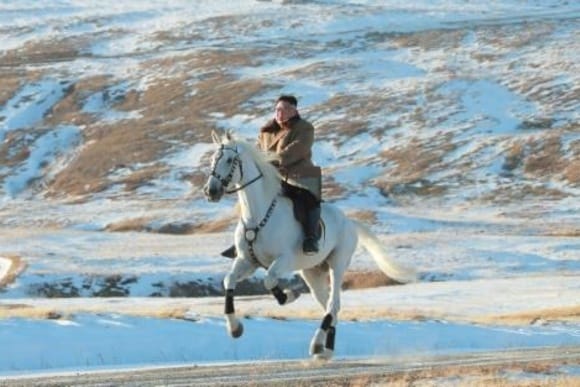 ففي تشرين الأول/اكتوبر 2019 نشرت وسائل الإعلام الكورية الشمالية صورا لكيم وهو على حصان ابيض في موقع يغطيه الثلج وصولا الى قمة بايكتو المقدسة، وهو موضوع متكرر في صور أسلافه.