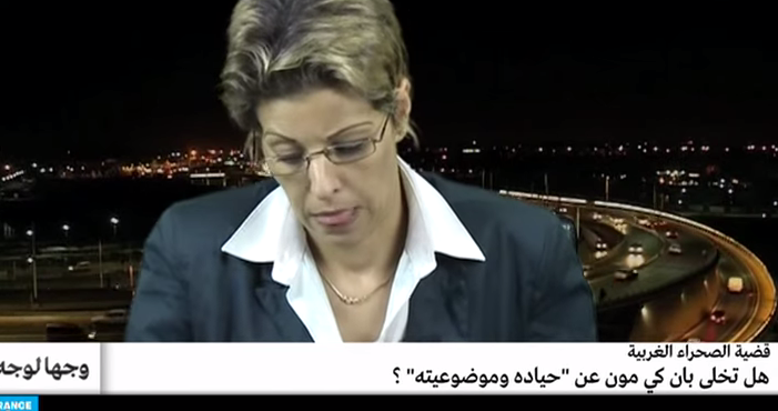 اليوم وأنا أشاهد برنامجا تلفزيونيا على قناة فرنسا 24 الدولية بث في تاريخ 11 مارس 2016, استوقفتني ضيفة حلقة وجها لوجه الذي يناقش قضية الصحراء في سؤال “هل تخلى بان كي مون عن حياده وموضوعيته؟”, يثري الحوار ضيفين, الأول شاب مثقف له حنكة في النقاش على مايبدو, ويناقش بكل أريحية وثقة, ويمثل جبهة البوليساريو, والثانية ممثلة عن المغرب للدفاع عن قضيته المصيرية.